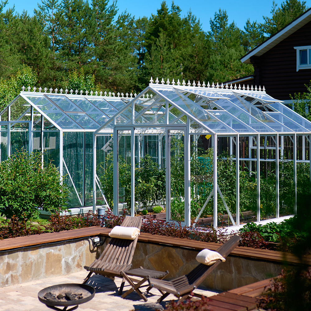 С 2001 года компания GLASS HOUSE производит и реализует качественные и надежные английские теплицы и теплицы из стекла с алюминиевым каркасом. В нашем каталоге в ассортименте представлены садовые, приусадебные и пристенные модели, а также оранжереи и заказные конструкции для дома или небольшого фермерского хозяйства по индивидуальным размерам. Любую конструкцию можно оснастить дополнительными торцевыми и боковыми дверями, форточками и перегородками. Для комфортного выращивания различных культур, в каждой теплице предусмотрено размещение грядок, а также систем подвязки растений и автоматического проветривания.