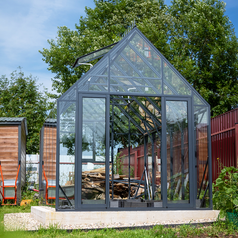 Модель ESTRELLA – это теплица с увеличенной высотой. Такая конфигурация стала возможна за счёт уменьшения угла в коньке конструкции. Благодаря такому углу, верхний скат теплицы стал более приспособлен для ускоренного самостоятельного схода снега, который даже не успевает скапливаться на крыше.