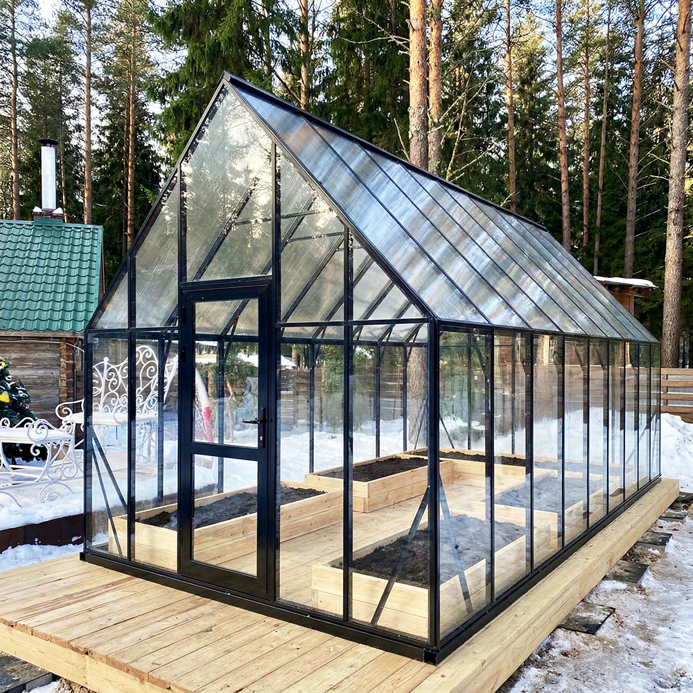 Одна из самых популярных моделей. Внутреннее пространство позволяет выращивать высокорослые сорта томатов, огурцов, перца без ограничения роста. Благодаря остроконечной крыше, угол которой 90 градусов, снижается нагрузка на каркас теплицы, приводит к нулевому риску деформации и разрушения теплицы в зимний период. ЭСТРЕЛЛА 3000 сочетается с любым стилем ландшафтного дизайна, являясь его доминантой.