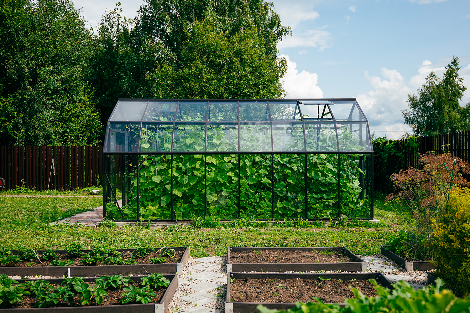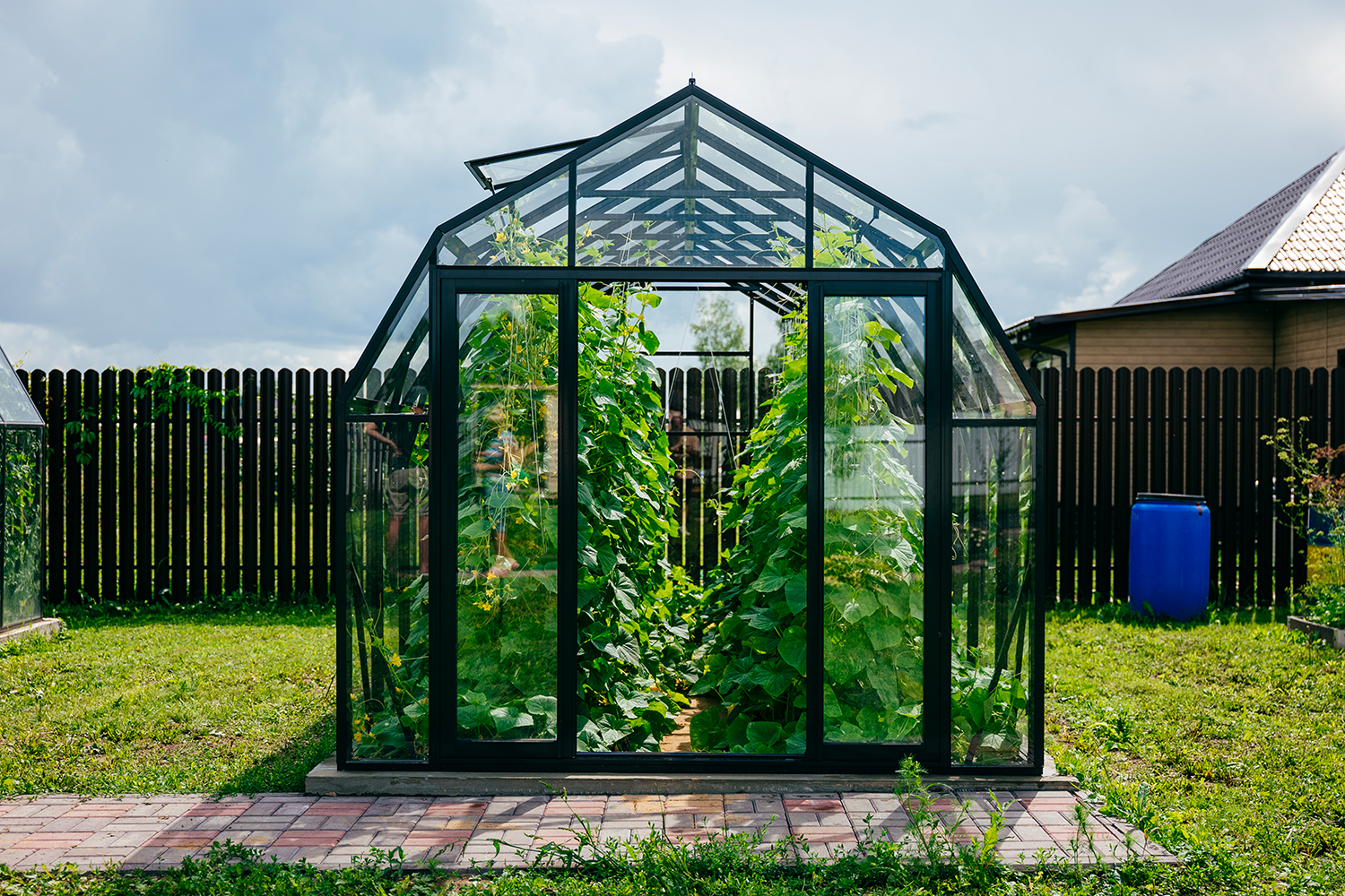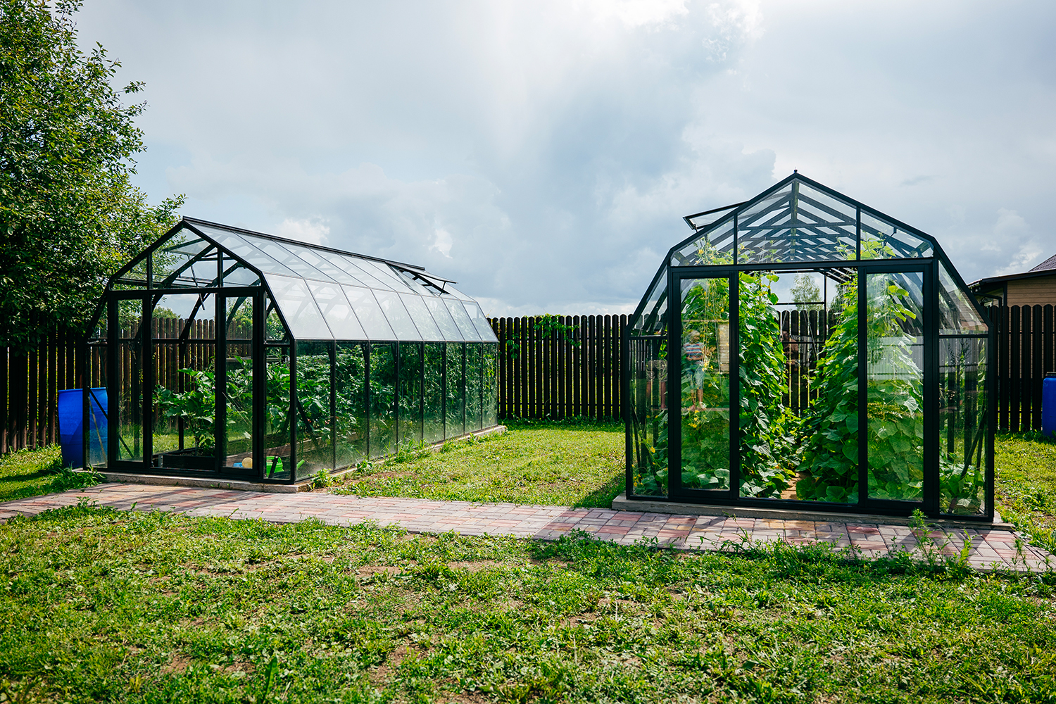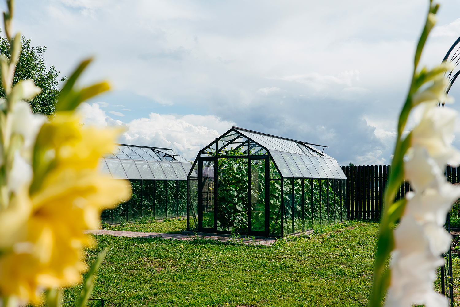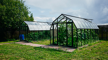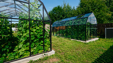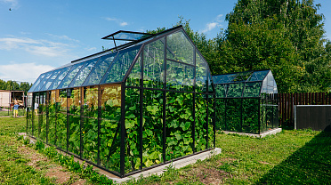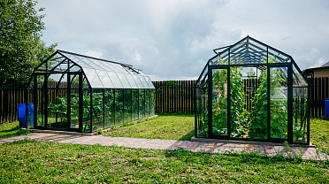 Две теплицы КРИСТАЛИКА Классик – выверенная архитектура и уверенная конструкция. Чёткая геометрия формирует гармоничную композицию на участке, а продуманное решение обеспечивает стабильность и надёжность в эксплуатации.